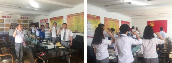 2016年6月30日,青海物產(chǎn)汽貿(mào)公司黨支部組織全體黨員慶"七一"上黨課。黨課開始之前,全體黨員面向黨旗重溫了《入黨誓詞》。"我志愿加入中國共產(chǎn)黨,擁護黨的綱領(lǐng),遵守黨的章程,履行黨員義務,執(zhí)行黨的決定,嚴守黨的紀律,保守黨的秘密,對黨忠誠,積極工作,為共產(chǎn)主義奮斗終身,隨時準備為黨和人民犧牲一切!永不叛黨"。