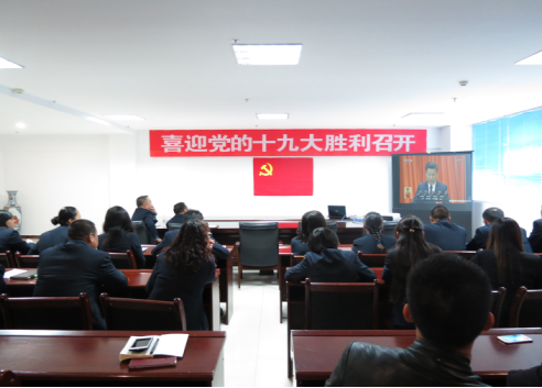 (現代物流 訊 和永歡/文趙琳/攝)10月18日上午9時,舉世矚目的中國共產黨第十九次全國代表大會在北京人民大會堂隆重開幕?,F代物流公司黨支部組織全體黨員、發展對象、入黨積極分子、主管以上干部及商戶黨員代表共計25人在公司會議室收看了十九大開幕式直播盛況,并認真聆聽了習總書記代表十八屆中央委員會作的報告。