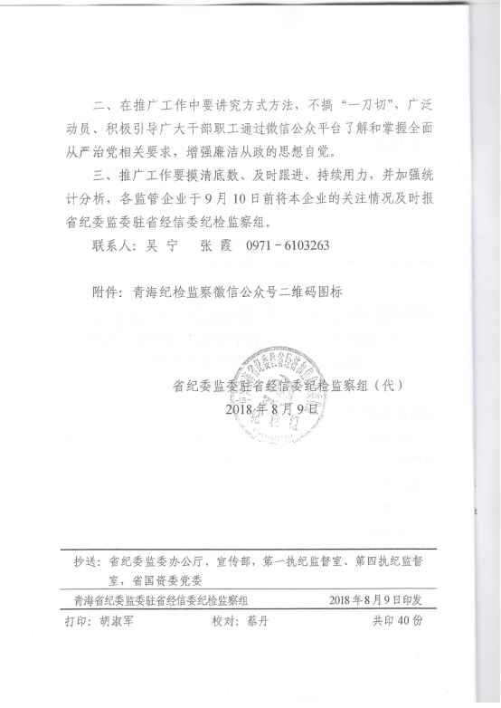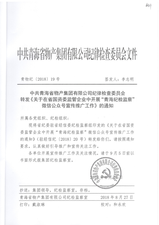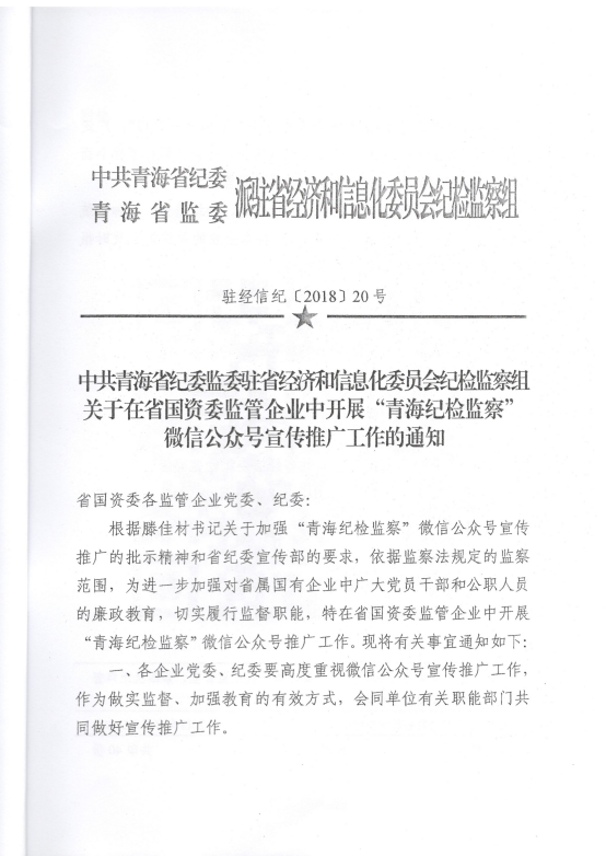 轉發《關于在省國資委監管企業中開展“青海紀檢監察”微信公眾號宣傳推廣工作》的通知
