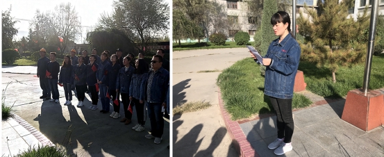 上午9時整,升起儀式正式開始,激昂的《義勇軍進行曲》莊嚴響起,擎旗手揮臂揚起,五星紅旗冉冉升起。全體團員青年面向國旗列隊并行注目禮,共同祝愿偉大祖國繁榮富強,祝福物產明天更加燦爛美好。