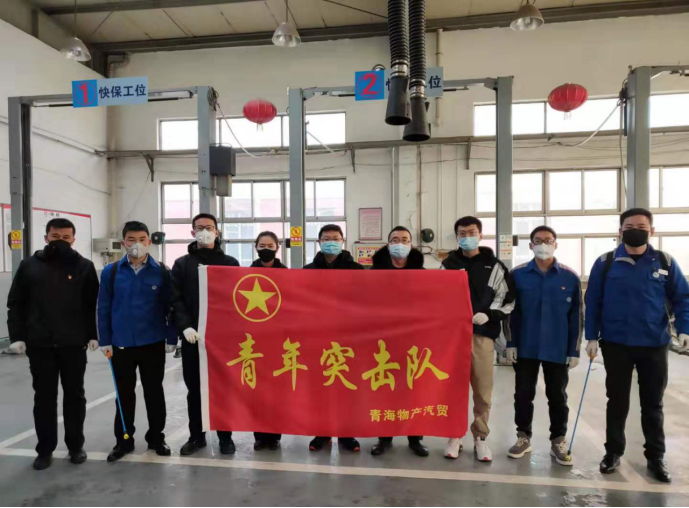 物產汽貿公司青年突擊隊用實際行動踐行"青海高原青年文明號"精神,隊員們危難時刻,挺身而出,堅持每天對40臺試乘試駕車、救援車、展廳新車、車間舉升機設備、5000平米的辦公場所、更衣間等所有客戶和員工能夠接觸到的區域進行徹底無死角的消毒除菌,備好醫用口罩、體溫計、洗手液和消毒液等物品,為做好公司全面復工保障一個安全的工作環境。