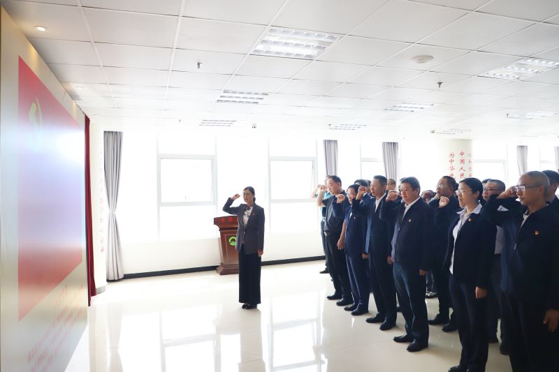 活動中通報了“學習貫徹習近平新時代中國特色社會主義思想主題教育線上知識競答”活動獲獎單位和個人,集團領導為獲獎單位頒發獎牌,并為集團系統2023年新發展的黨員頒發《政治生日卡》。全體黨員重溫入黨誓詞,鏗鏘有力的宣誓聲響徹全場。