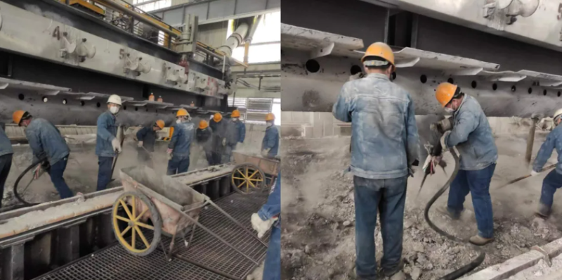 電解槽大修如同外科手術,需在有限停槽期內完成數個部件的拆解、檢測與更換。延誤一天,意味著效益的損失。為搶進度,電解車間將人員分成四班倒,可實際干起來,所有人都不約而同選擇了“連軸轉”。技術員小王剛下白班,見夜班人手緊張,抓起手套又鉆進了槽底:“早一天啟動,就能多增加1噸多的鋁液!”槽頂排風機的嗡鳴聲中,安全員老周扯著嗓門喊:“防護面罩戴緊!粉塵吸進肺里要命!”他手里的強光手電掃過槽底,光束里翻騰的塵埃像一場無聲的雪暴。十幾米長的電解槽如同被解剖的巨獸,槽殼敞露,陰極鋼棒上斑駁的電解質結痂仿佛鱗片,記錄著它連續運轉10多年的疲憊。這是大修的關鍵戰役—— 7天內,必須讓電解槽“復活”。