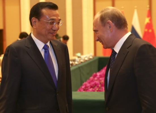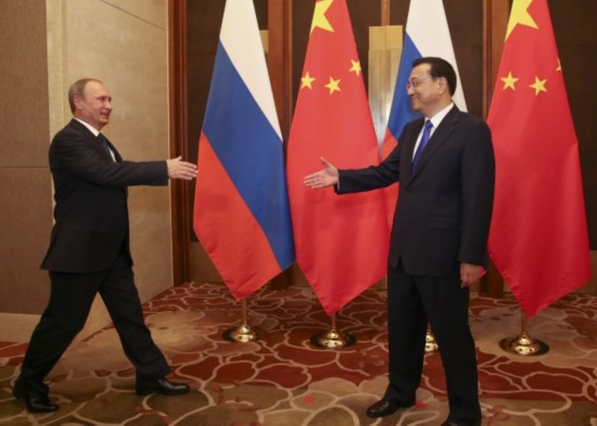 李克強總理會見俄羅斯總統普京時說:"中俄兩國是戰略伙伴,互為最大鄰國。共同維護二戰勝利成果,反對歪曲篡改二戰歷史,這是我們的共識,也是對世界正義的伸張。"