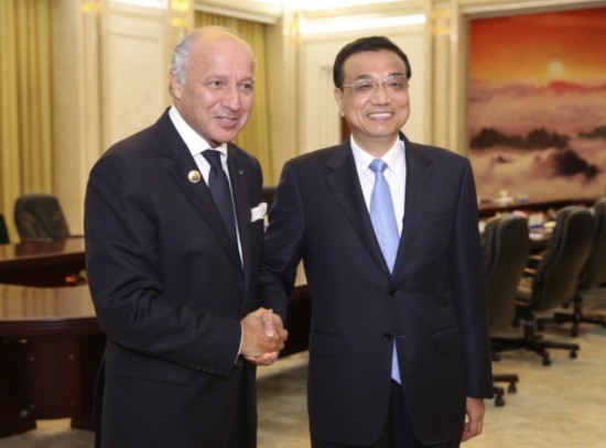 李克強總理會見法國外長法比尤斯時說:"希望把中法第三方合作和核能合作做成'南北合作'的示范項目,做成推動世界經濟向復蘇方向前行的引導性項目。"